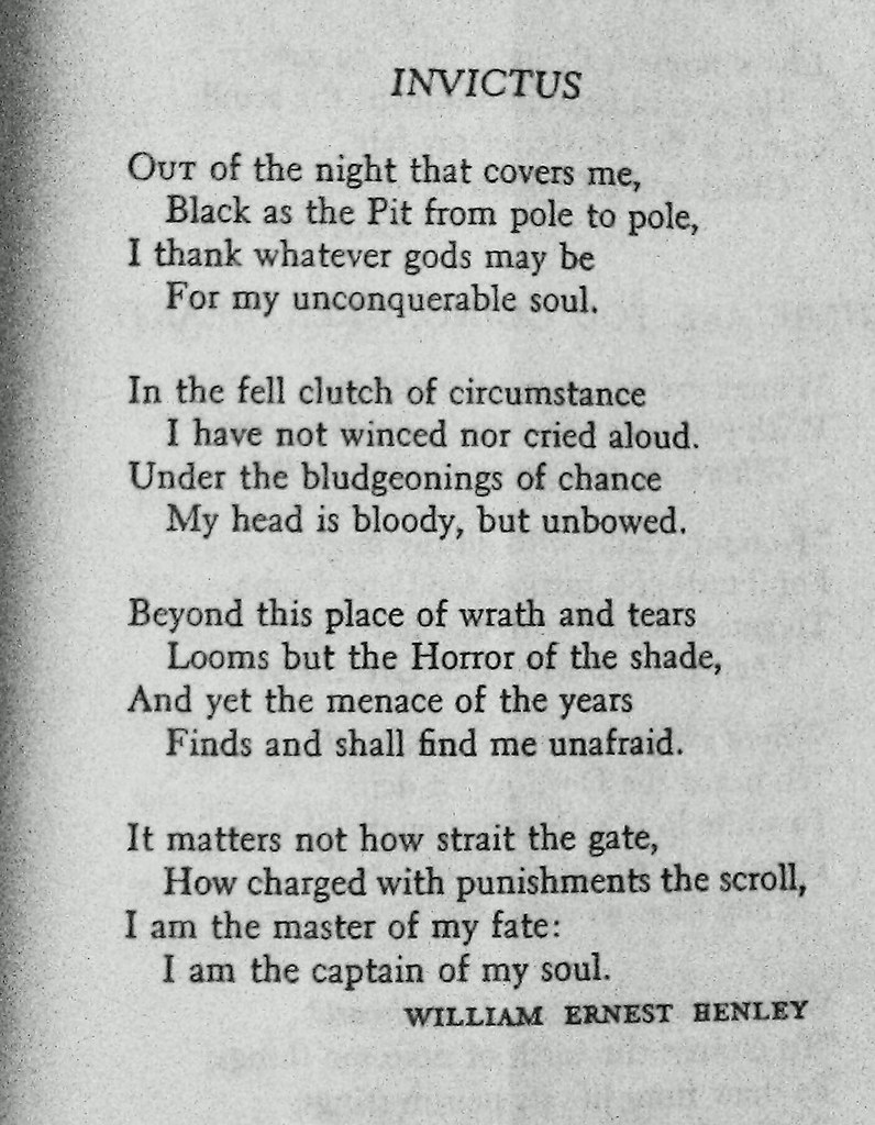 Invictus William Ernest Henley Out Of The Night That Covers Me, Black As The Pit From Pole To Pole, I Thank Whatever Gods May Be For My Unconquerable Soul.